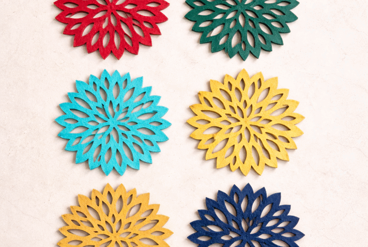 Add a touch of elegance to your table with these beautifully crafted lotus-shaped wooden coasters. Designed in vibrant colors, they protect surfaces while enhancing your décor. Perfect for everyday use, festive hosting, or thoughtful gifting.