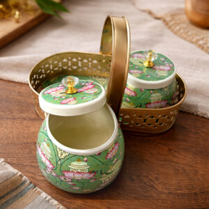 Pichwai Metal Jar Set with Tray